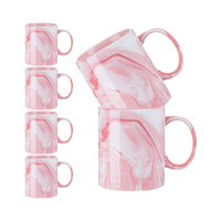 Set of 6 ceramic 330 ml Glitter mugs for printing - silver and pink