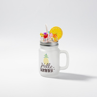 Mason Jar 500 ml mug with straw and handle - white, lid with artificial ice and lemon